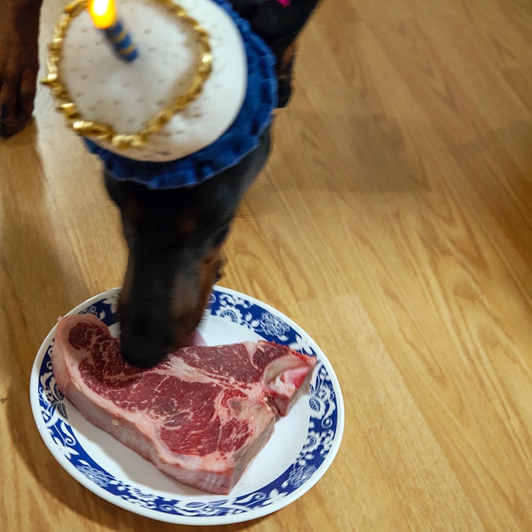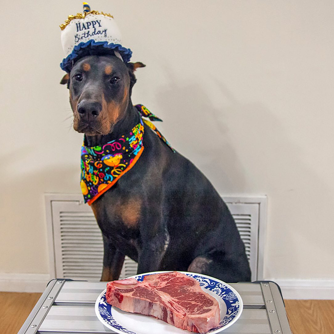For Atlas’ first birthday, we scheduled him with our vet for a neuter appointment (more on this in a separate article) and then gave him a juicy prime T-Bone steak for him and him alone to enjoy. Let’s just say he gobbled it up in less than 2 minutes and then went after the bone for another 30 minutes until I took it away.