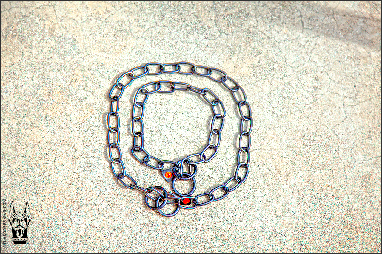 Let’s start off with what I did wrong. I ordered the incorrect Herm Sprenger slip chain collar size for Atlas. I researched how to properly size a slip chain collar and the recommendation is neck size plus 2 inches. At the time, Atlas’ neck was 13″ so I ordered a size 15″. However, the chain wouldn’t fit over his head!