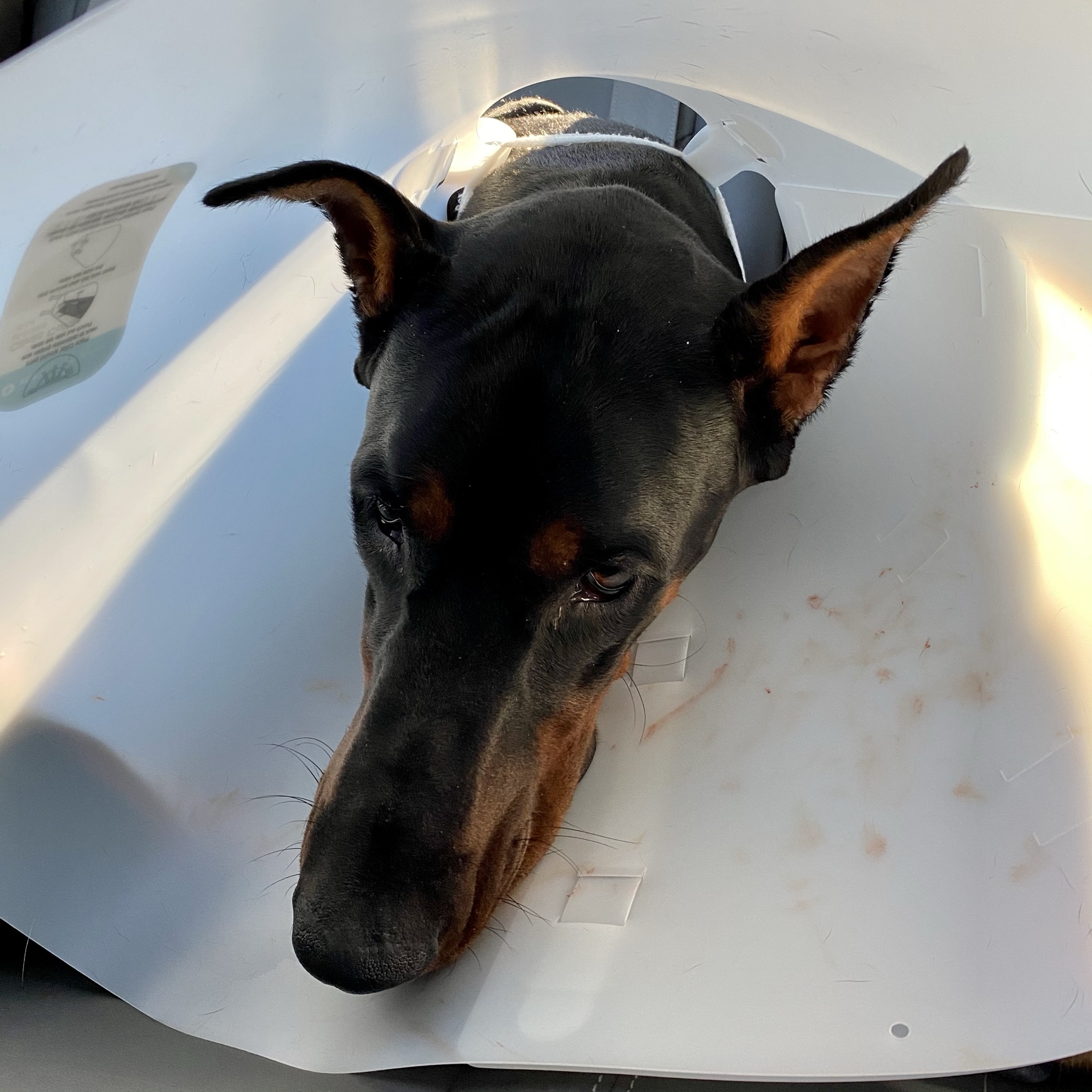 On the first day of recovery, Atlas was lethargic and hated his collar. Somehow, he managed to chew a portion of his collar. By the second day, Atlas was back to his goofy self. His urge to lick his surgical area was at an all time high.