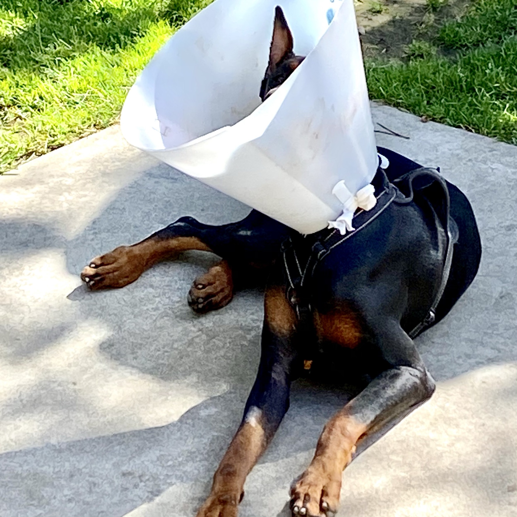 Many people have their dogs neutered at around six months. We waited until Atlas turned one year old to have the procedure done. Our vets informed us that since Dobermans are large breed dog, they are continuing to grow even past six months. It is best to wait until at least one year old or 18 months before neutering. Since we take Atlas to doggy daycare and board him, we decided to have the procedure done at one year. The doggy daycare require all dogs over 6 months old to be neutered.