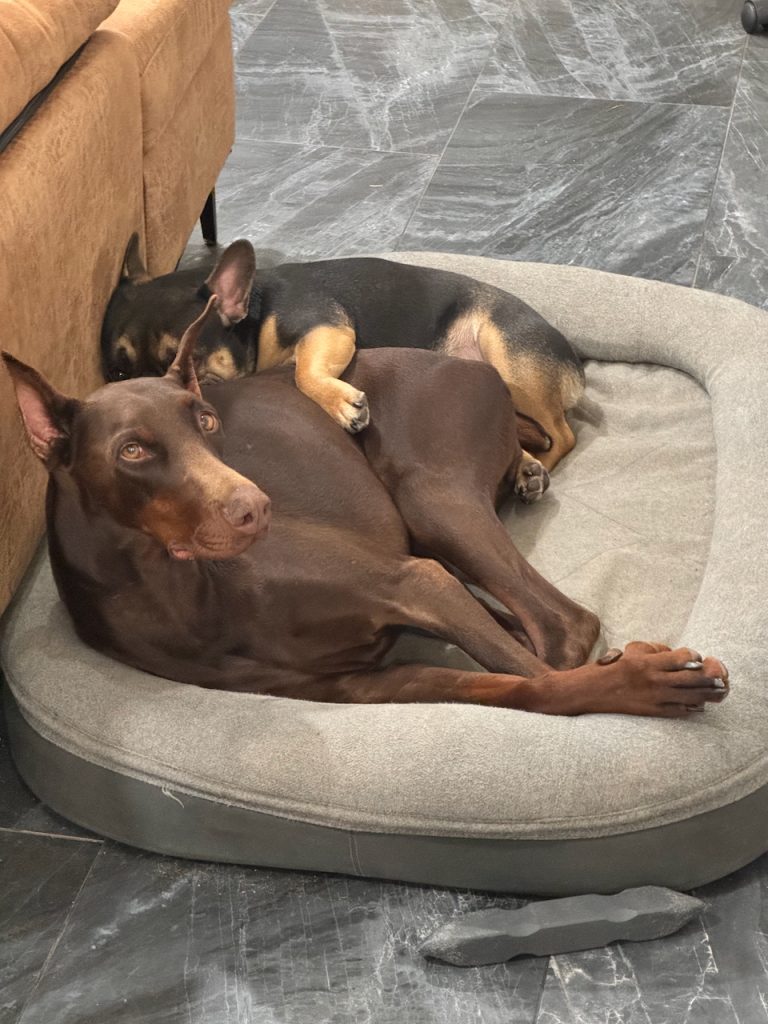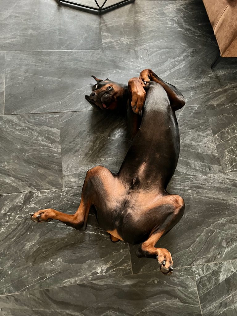 Lastly, your Doberman should have a means to relieve itself especially when the house will be vacant for a long period of time. Back in our old house in Southern California, we installed a large dog door that attaches to our patio sliding glass door that leads to our backyard. Back then, both wife and I were out at least 8 hours a day for work. With this dog door installed, Atlas could catch some sun or a breeze, or just relieve himself when he needs to at his own leisure. When the outdoor temperature is too hot, he can help himself back inside and slouch on his dog bed.