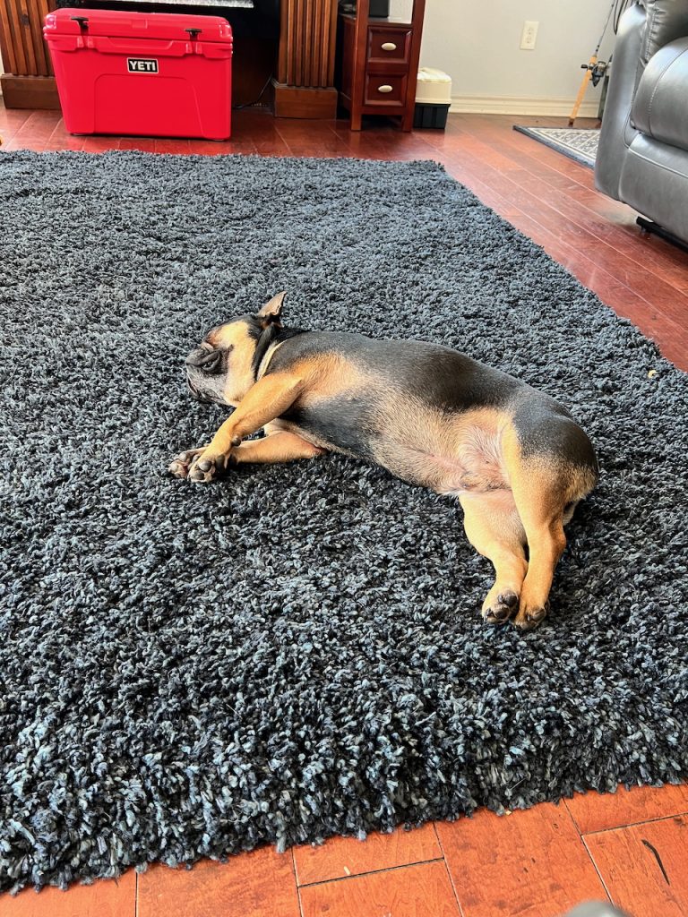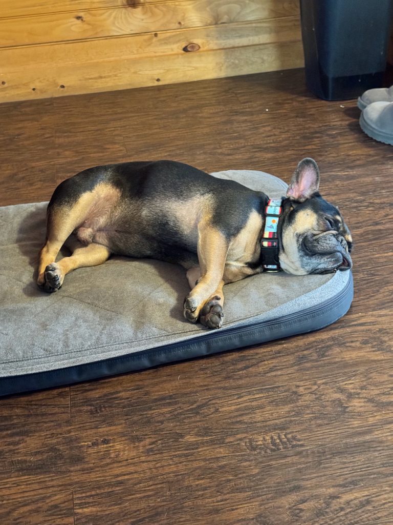 Atlas sleeps on his dog bed about 75% of the time. He spends the other 25% chewing on his MegaMax Indestructibone.