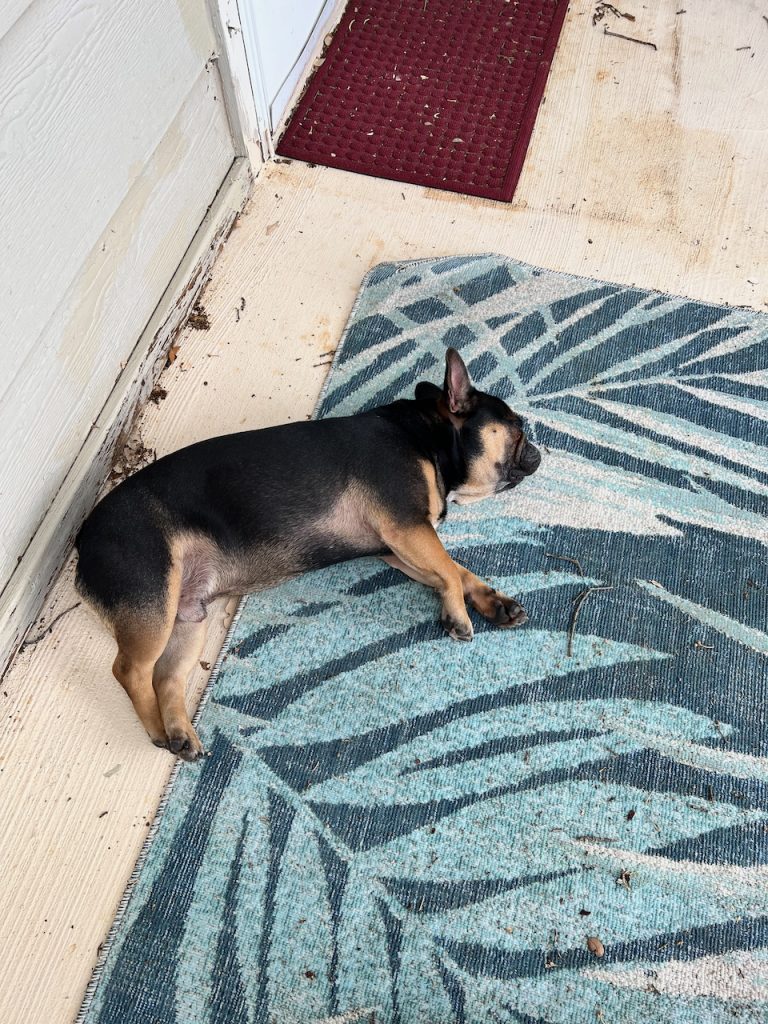 Loki spends 10% of his alone time barking at passerby, 10% chewing on his rubber chew toys and 80% sleeping.