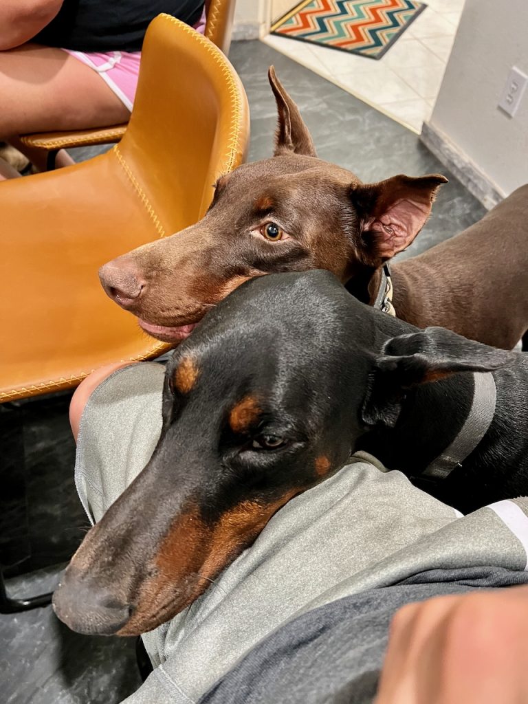 This means, your Doberman knows its role indoor and is 100% housebroken. It must understand what it can or cannot do. For example, it must be trained early in its puppyhood that getting on or chewing on furniture is prohibited. It must also understand that some rooms are forbidden. From my personal experience, correction is 100% necessary to teach your pup what is right from wrong. None of that positive-only training nonsense that gained popularity for a while in the early 2020’s.